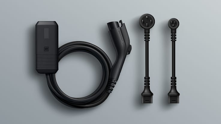 Your LYRIQ-V electric SUV arrives with a 6-meter 7.7 kW dual-level charging cord. Plug into an appliance-style, 4-prong outlet for up to 35 KM of range*  per hour of charge. You may also plug into a standard 3-prong home outlet for up to 5 KM of range*  per hour of charge.